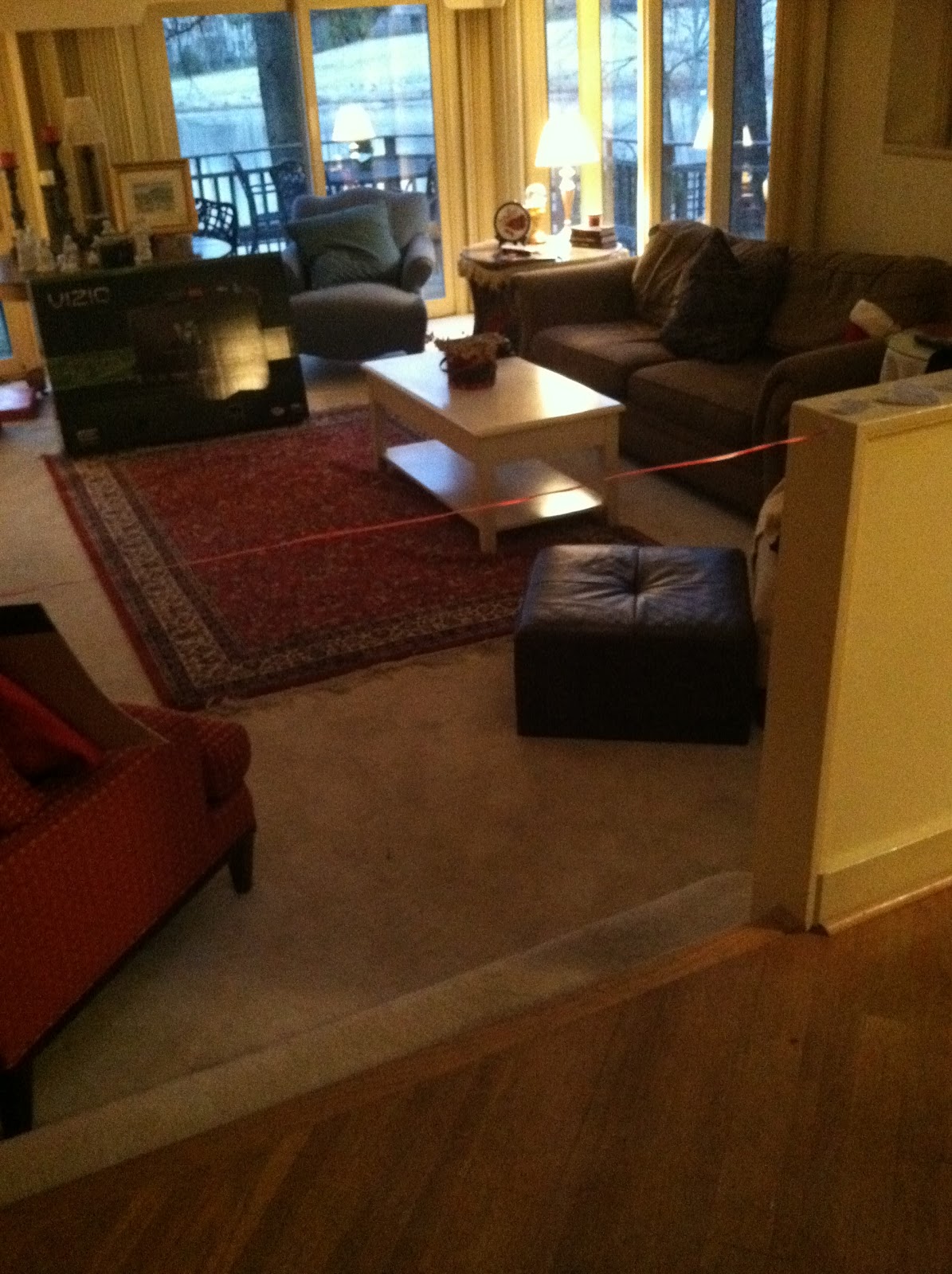 We roped off the gift area of our house – as seen above. So when my children woke up – they were forbidden from entering the gift area. In lieu of gifts, they were given 4 black hearts. (One for each family member.)