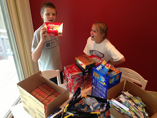 My kids helped stuff goody bags a few days prior to the tournament.   We had such fun doing it!