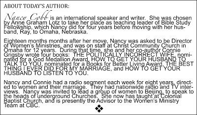 Below is Nancy’s story – as told through her seasons of life. You’ll note, she’s a real woman, with real life issues – real disappointments and almost turned her back on God. In fact, she was 43 when she came to know Jesus. She persevered and as a result, Jesus has enabled her to impact her corner of the world profoundly. (And many other corners as well! Mine being one of them. [Tara])